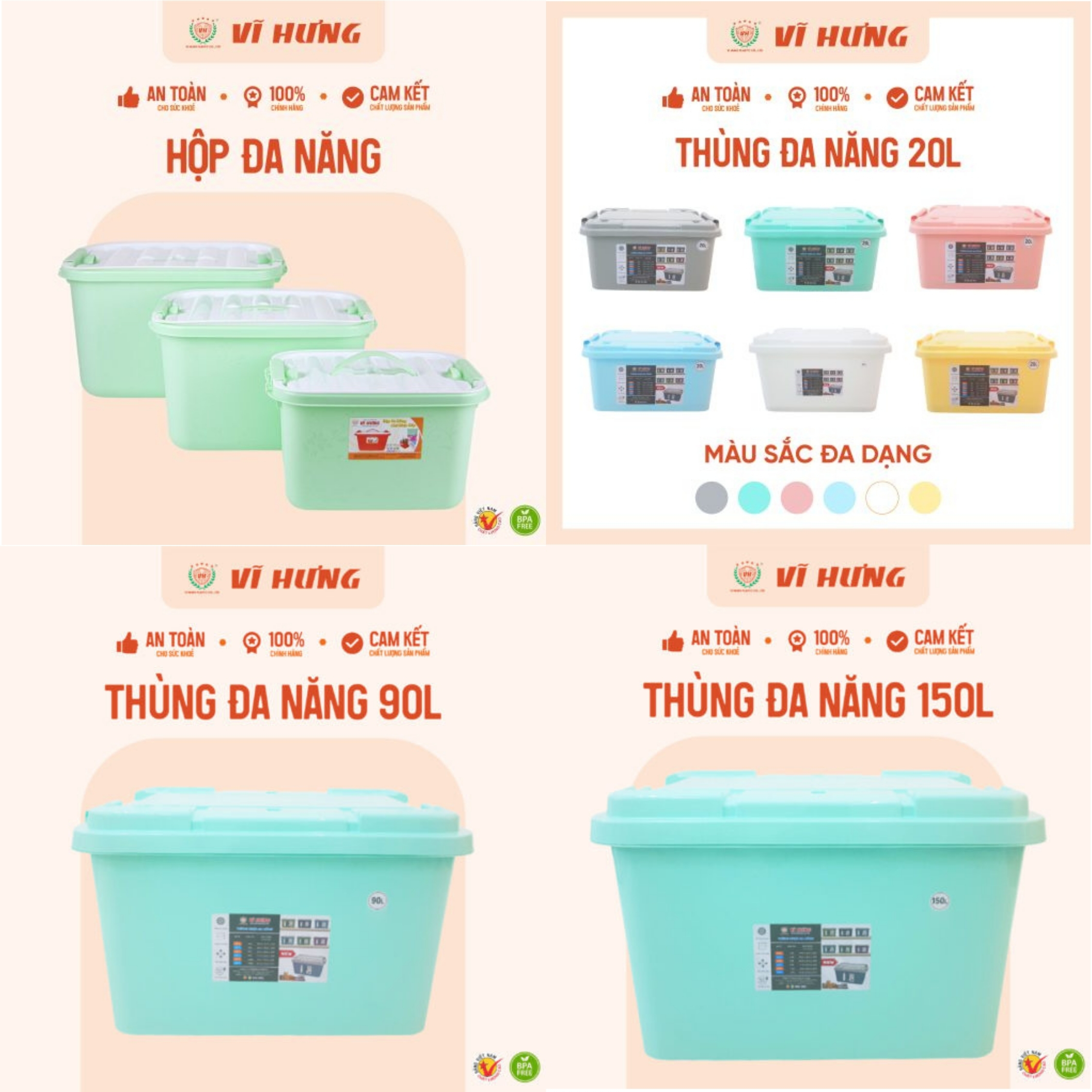 Thùng đa năng Vĩ Hưng có 2 bảng màu riêng biệt cho 2 dòng sản phẩm.