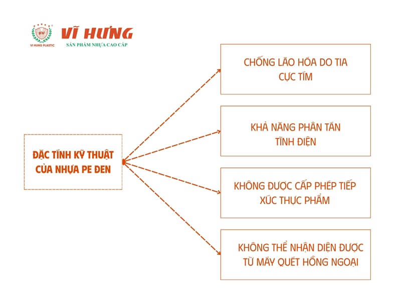 Nhựa PE đen sở hữu các đặc tính kỹ thuật vượt trội bao gồm khả năng chống lão hóa, khả năng xả tĩnh điện, nhưng đi kèm rào cản về mức độ an toàn thực phẩm và khả năng phân loại tái chế tự động.
