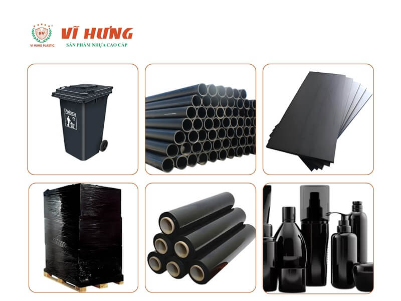 Nhựa PE đen được ứng dụng chủ lực trong các ngành hạ tầng cấp thoát nước, sản xuất thiết bị vệ sinh môi trường và màng bao bì nông nghiệp nhờ đặc tính kháng hóa chất và chịu thời tiết khắc nghiệt.