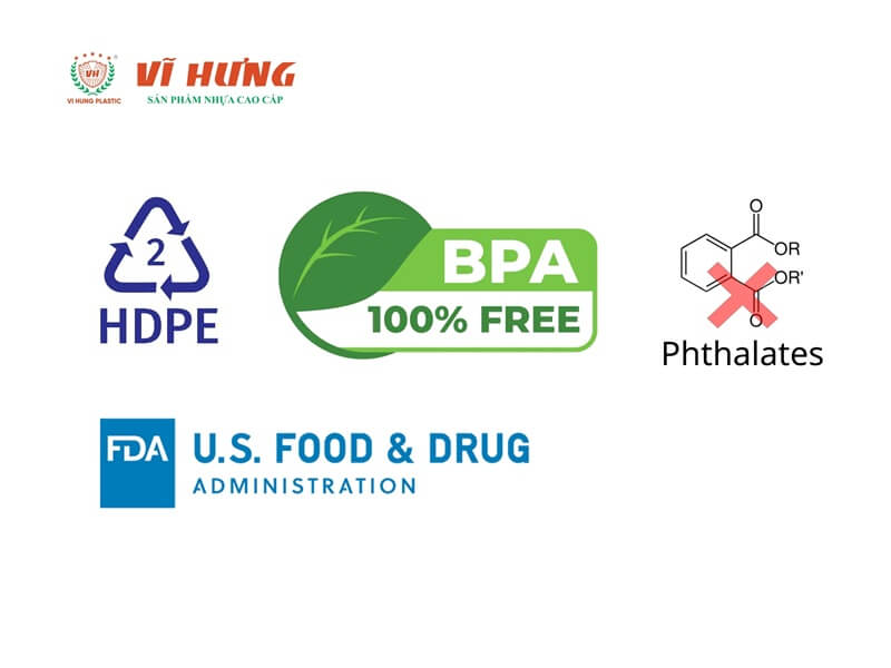 Nhựa HDPE có cấu trúc hóa học trơ, không chứa hợp chất Bisphenol-A (BPA) và không sử dụng các chất phụ gia hóa dẻo (Phthalates) trong quá trình tổng hợp. Đặc tính này giúp HDPE không phát sinh phản ứng hóa học khi tiếp xúc với thực phẩm, không làm thay đổi mùi vị và không giải phóng các tác nhân gây rối loạn nội tiết vào cơ thể con người.