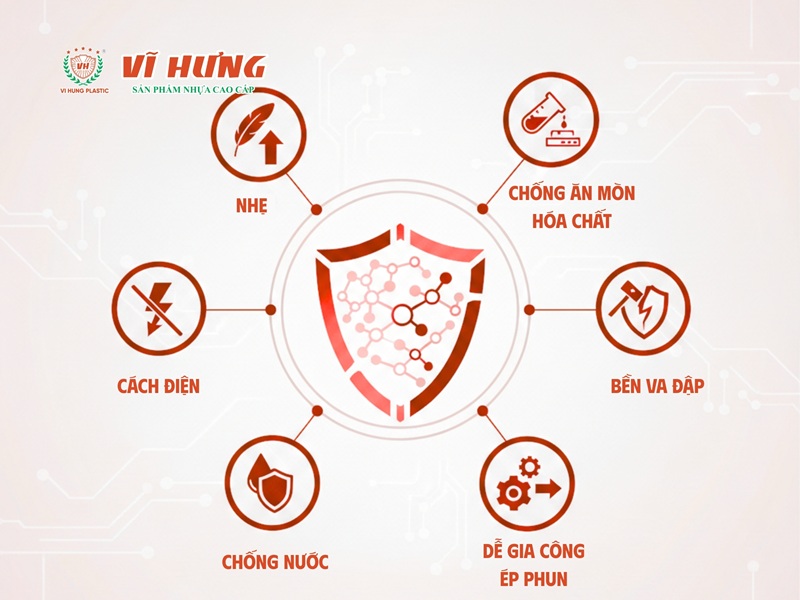- Nhựa có độ bền hóa học cao cho phép sản phẩm chống lại sự ăn mòn của axit, kiềm, muối và hoàn toàn không bị oxy hóa hay gỉ sét trong môi trường độ ẩm cao.