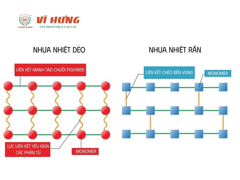 - Nhựa nhiệt rắn: Loại nhựa này trải qua quá trình đóng rắn một lần duy nhất dưới tác dụng của nhiệt hoặc phản ứng hóa học tạo thành kết cấu không gian ba chiều bền vững không thể nóng chảy hay tái tạo hình dạng lại được ngay cả khi gia nhiệt ở nhiệt độ cao. Các loại nhựa nhiệt rắn điển hình như Epoxy, Melamine, Phenol Formaldehyde thường được ứng dụng làm vỏ thiết bị điện, tay cầm dụng cụ nấu ăn chịu nhiệt và keo dán công nghiệp.