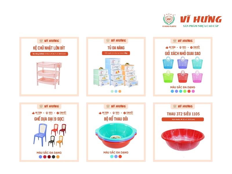 - Nhà máy sản xuất nội địa: Thay vì qua trung gian, việc lấy sỉ trực tiếp từ các nhà máy lớn như Nhựa Vĩ Hưng giúp tối ưu chiết khấu, đảm bảo nguồn hàng ổn định, chất lượng đồng đều và đặc biệt là xuất đầy đủ hóa đơn VAT.