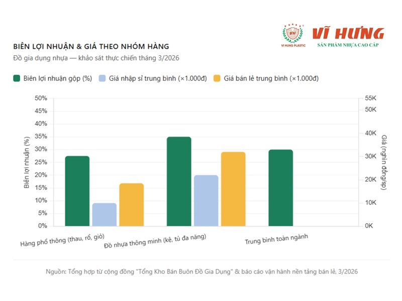 Biên độ lợi nhuận gộp: Trung bình ngành đồ gia dụng và đồ nhựa hiện đạt mức 25% – 35% (sau khi trừ giá vốn).
