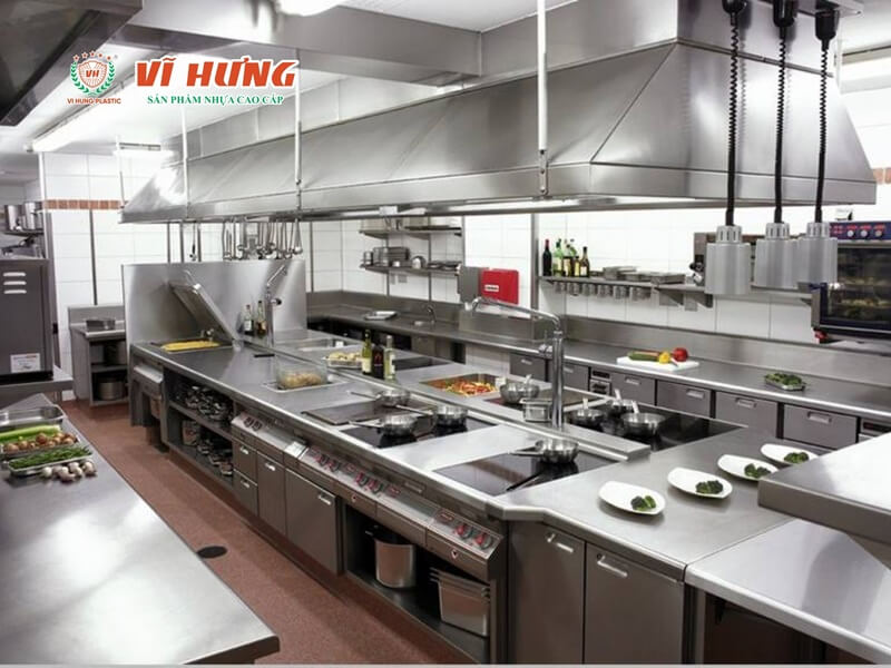 Khu bếp hậu trường cần sử dụng đồ nhựa gia dụng với số lượng rất lớn vì cần rửa nhanh, bền, nhẹ, và thay thế thường xuyên khi phục vụ hàng trăm bàn mỗi tuần. Toàn bộ đồ nhựa phục vụ bếp hậu trường có thể tham khảo tại Nhựa Vĩ Hưng, chiết khấu mua sỉ lên đến 30%. Liên hệ hotline: 0906828980