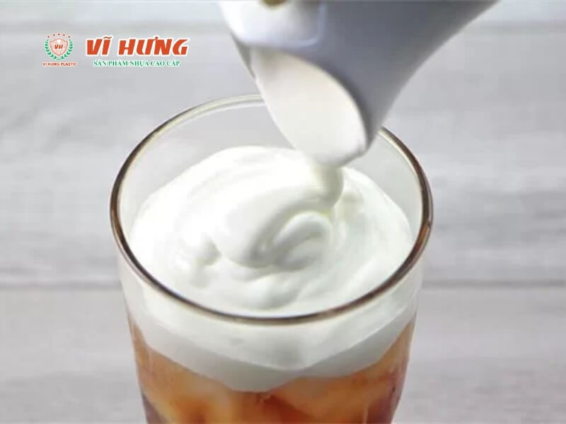 • Dùng bột milk foam chuyên dụng có chất ổn định để foam đặc hơn và giữ được lâu hơn. Bột kem phô mai AMI hoặc Sen Việt là hai loại phổ biến cho quán nhỏ tại TP.HCM.
