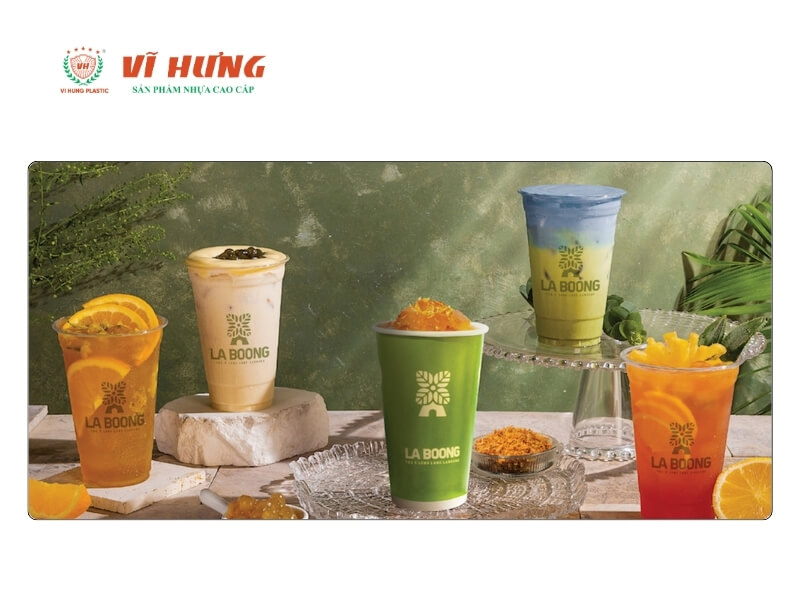 Ly PP (nhựa polypropylene) phù hợp nhất cho quán mang đi vì chịu nhiệt, ép màng được, và không biến dạng khi trời nóng. Ly PET trong suốt đẹp hơn nhưng không ép màng nhiệt được, chỉ phù hợp nếu quán dùng nắp cắm.