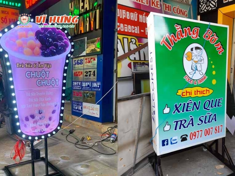 • Bảng hiệu đèn LED sáng, màu nổi, tên quán rõ ràng, đây là yếu tố quyết định khách đang chạy xe máy có dừng lại hay không. Bảng hiệu kích thước 1,5–2 mét, font chữ lớn đọc được từ xa 10–15 mét là mức tối thiểu.