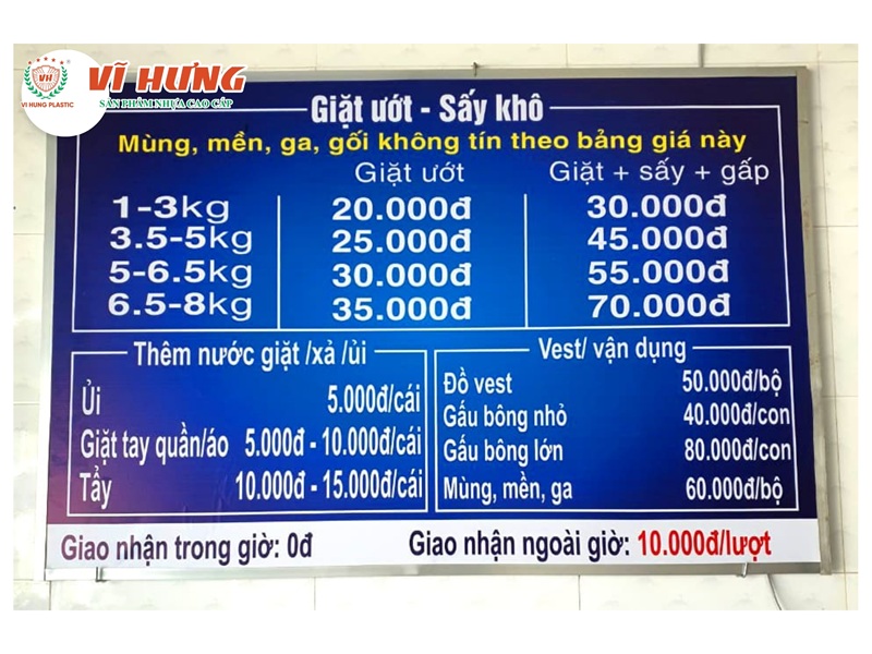 | Bảng hiệu cơ bản | 2–4 triệu | Bạt Hiflex / Mica nhỏ |