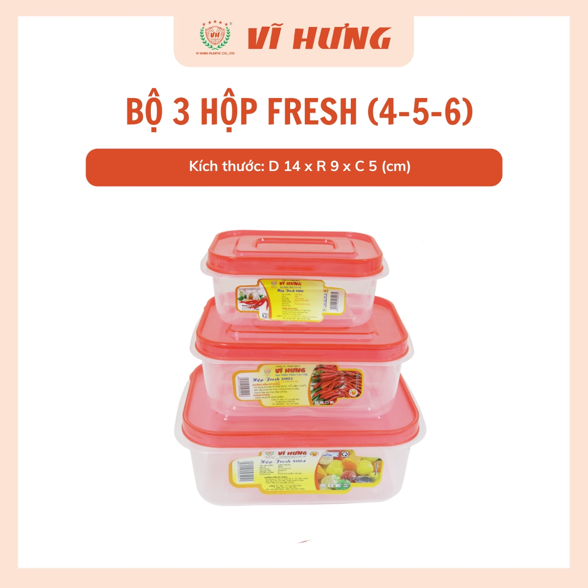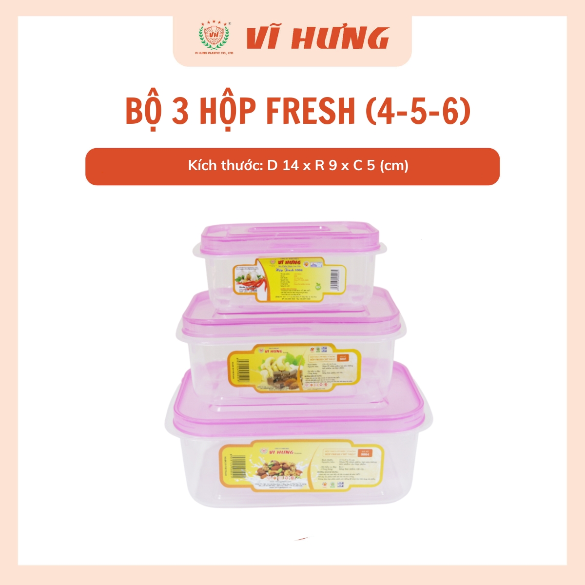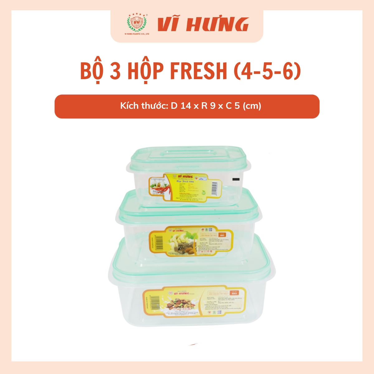 Bộ 3 hộp fresh nhỏ là sản phẩm của Công ty TNHH Nhựa Vĩ Hưng. Với hơn 30 năm sản xuất, Nhựa Vĩ Hưng tự hào là thương hiệu uy tín trong lĩnh vực sản xuất và kinh doanh các sản phẩm nhựa gia dụng, bao bì thực phẩm, linh kiện xe máy và đặc biệt là các sản phẩm nhựa công nghiệp kỹ thuật cao.