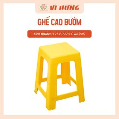 Ghế Cao Bướm được sản xuất từ nhựa cao cấp, đảm bảo độ bền chắc và khả năng chịu lực tốt. Với thiết kế chân ghế cao và mặt ghế rộng rãi, sản phẩm mang lại sự thoải mái khi sử dụng và dễ dàng lau chùi. Kiểu dáng đơn giản nhưng tiện lợi, phù hợp cho nhiều không gian như gia đình, quán ăn, quán cà phê. Nhờ trọng lượng nhẹ, ghế có thể di chuyển linh hoạt và xếp gọn khi cần thiết.