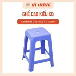 Ghế Cao Kiểu L8 được làm từ nhựa cao cấp, bền chắc và chịu lực tốt. Thiết kế chân cao vững chãi, mặt ghế rộng rãi giúp ngồi thoải mái trong thời gian dài. Sản phẩm dễ dàng vệ sinh, di chuyển linh hoạt, phù hợp cho gia đình, quán ăn, quán cà phê và nhiều không gian khác.