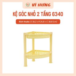 Kệ góc nhỏ 2 tầng – Thiết kế nhỏ gọn, tận dụng tối đa góc trống giúp tiết kiệm không gian. Chất liệu nhựa bền đẹp, chắc chắn và dễ lau chùi. Kệ có hai tầng tiện dụng, thích hợp để đựng gia vị, đồ dùng nhà bếp, mỹ phẩm hoặc vật dụng nhỏ trong phòng tắm, phòng ngủ. Kiểu dáng đơn giản, tinh tế, dễ dàng di chuyển và sắp xếp, phù hợp cho nhiều không gian trong gia đình.