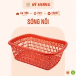 Sóng nôi – 6532 có thiết kế hình chữ nhật với lòng sâu 18 cm và thành cao, tối ưu cho việc chứa đựng lượng quần áo hoặc vật dụng lớn trong một lần di chuyển. Thành rổ được cấu tạo bởi các khe hở nan dọc giúp không khí lưu thông, kết hợp với đáy lưới ô vuông dày dặn đảm bảo thoát nước nhanh khi đựng đồ ướt. Vành miệng rổ được đúc bản rộng và dày, tạo điểm tựa chắc chắn cho tay khi cần nâng lên hoặc bưng bê. Các góc rổ được bo tròn nhẹ, an toàn khi đặt tại các khu vực sinh hoạt chung hoặc lối đi hẹp. Sản phẩm phù hợp để gom quần áo bẩn, đựng rau củ quả hoặc phân loại hàng hóa cần sự thông thoáng.