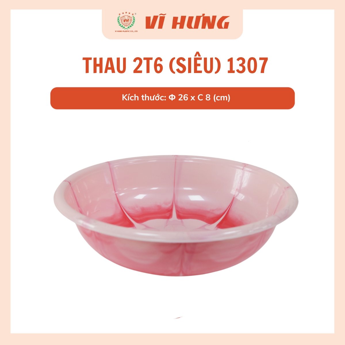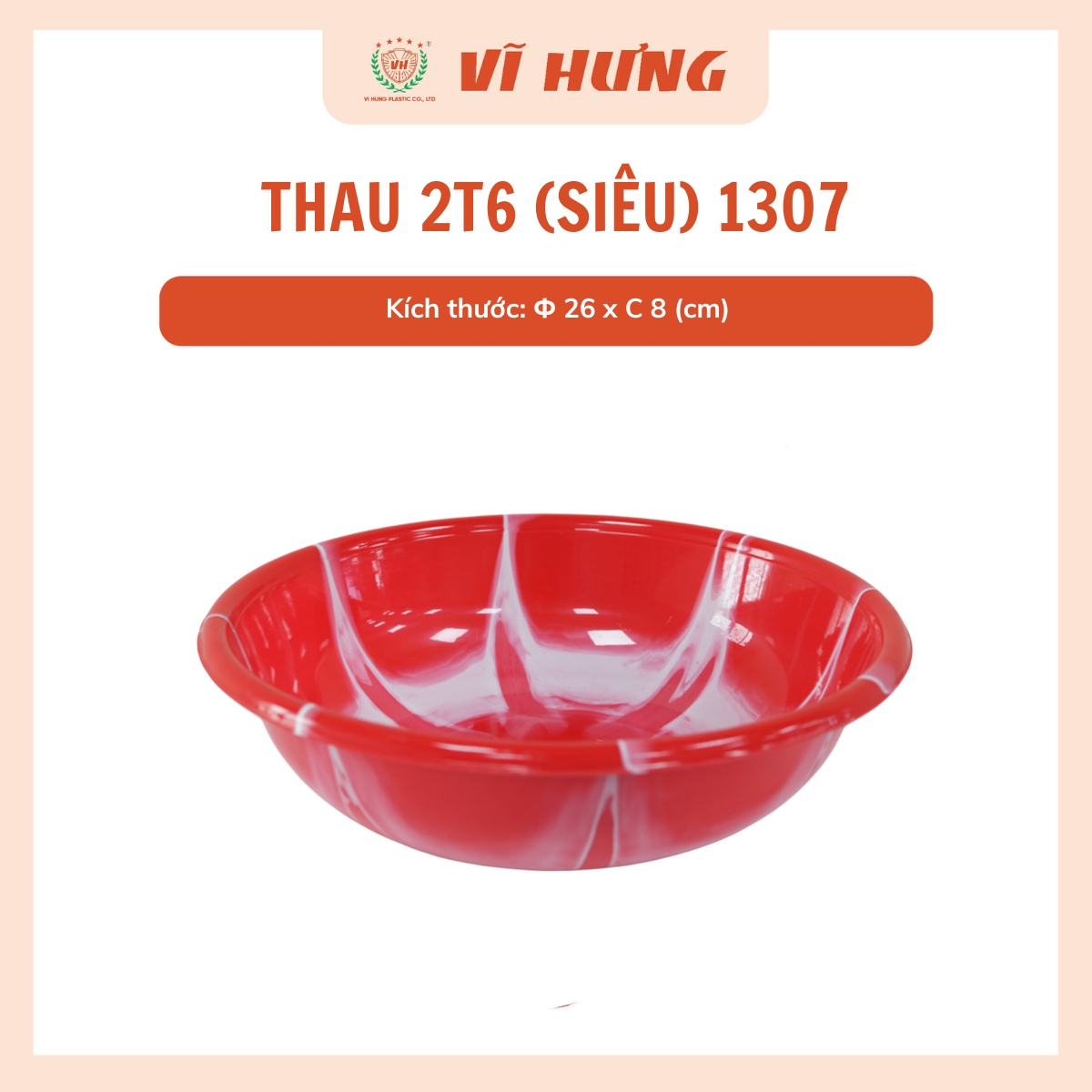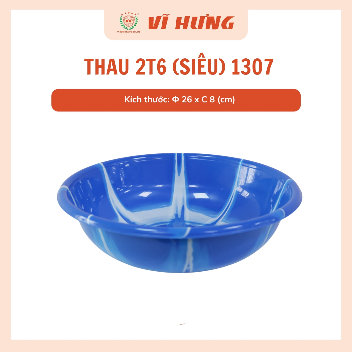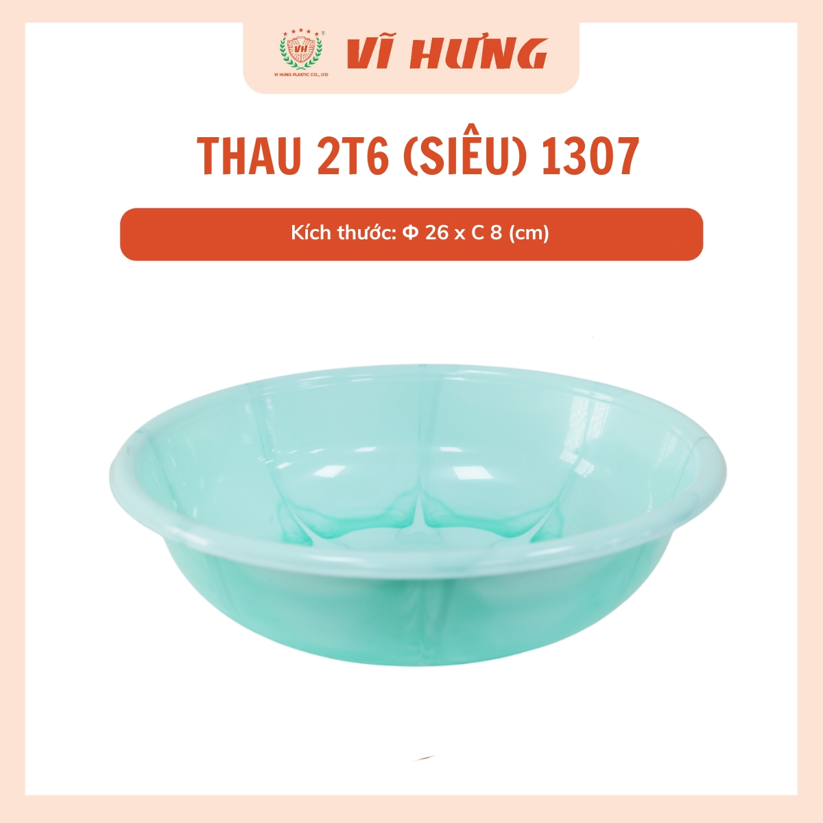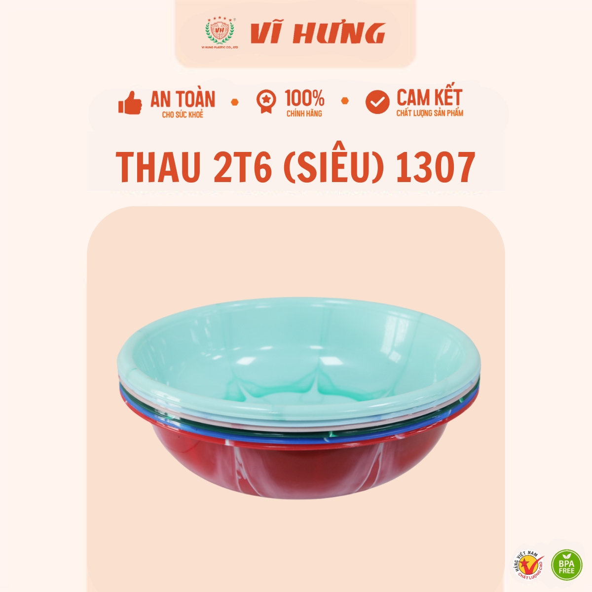 Thau 2T6 siêu 1307 được làm từ nhựa dày dặn, bền bỉ, giúp chịu lực tốt và khó nứt vỡ. Sản phẩm có thiết kế bầu rộng, giúp tăng dung tích chứa, phù hợp để giặt giũ, rửa đồ…. Bề mặt thau trơn nhẵn giúp dễ dàng vệ sinh sau khi sử dụng, mang lại sự tiện lợi cho người dùng.